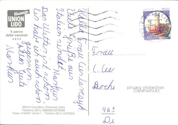 old postcard Cavallino Venezia Vacanze Union Lido postalisch gelaufen Erhaltung siehe scans