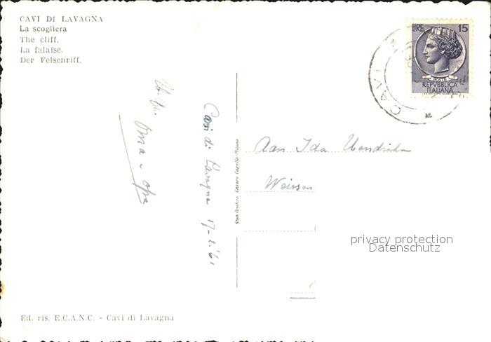old postcard Cavi di Lavagna La scogliera Felsenriff Kueste postalisch gelaufen Erhaltung siehe scans
