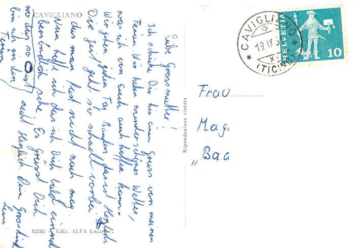 13872770 alte Postkarte Cavigliano TI Fliegeraufnahme postalisch gelaufen Erhaltung siehe scans [WerneD78] KatCode: 11470210655922