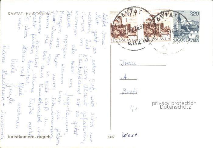old postcard Cavtat Dalmatien Hotel Albatros postalisch gelaufen Erhaltung siehe scans