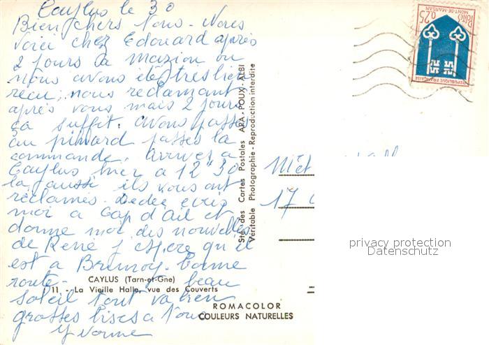 13578305 carte postale Caylus La Vieille Halle vue des Couverts postalisch gelaufen Erhaltung siehe scans [WerneD78] KatCode: 11170082282038