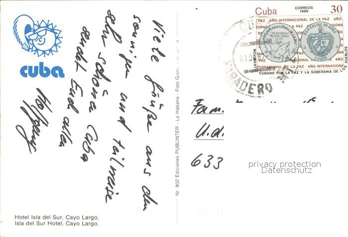 old postcard Cayo Largo Hotel Isla del Sur postalisch gelaufen Erhaltung siehe scans