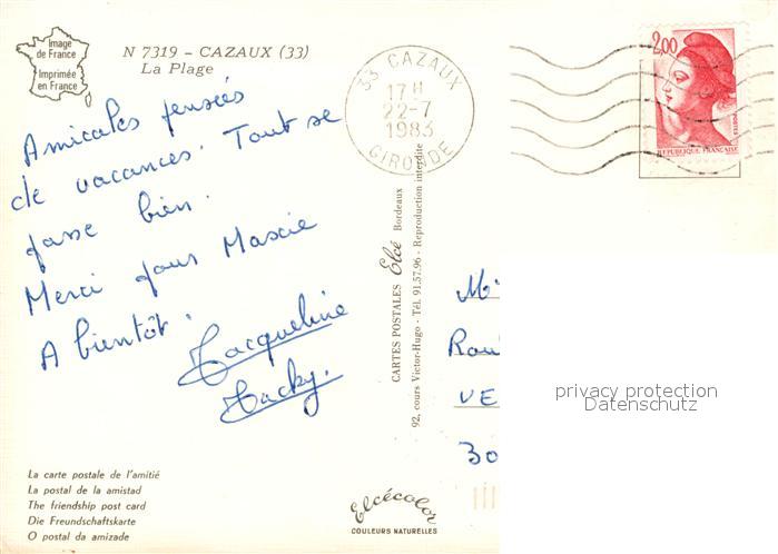 13545749 carte postale Cazaux La Teste-de-Buch La Plage postalisch gelaufen Erhaltung siehe scans [WerneD78] KatCode: 11170033633529