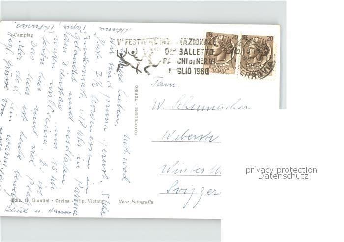 old postcard Cecina Mare Camping postalisch gelaufen Erhaltung siehe scans