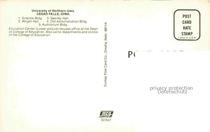 74021337 Cedar Falls Iowa University of northern Iowa postalisch nicht gelaufen Erhaltung siehe scans [FriedD77] KatCode: 14140170000000