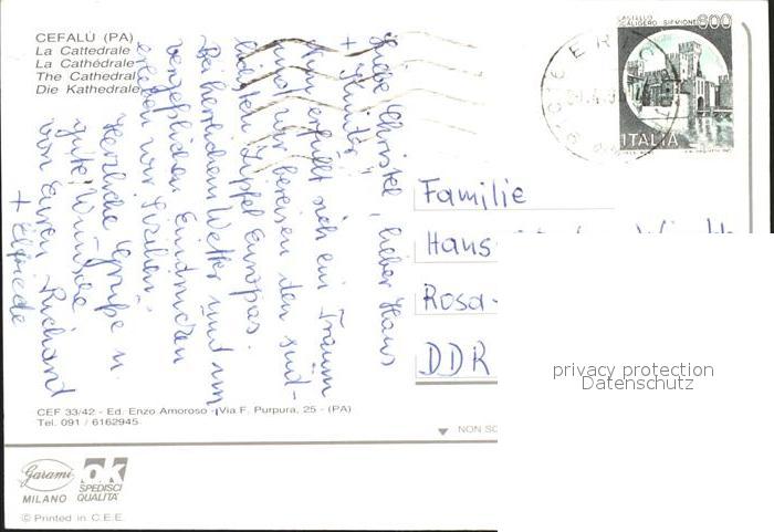 old postcard Cefalu Cattedrale Kathedrale postalisch gelaufen Erhaltung siehe scans