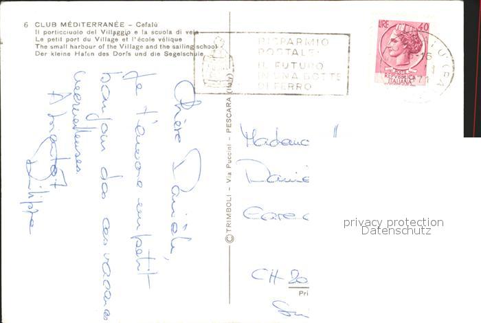 old postcard Cefalu Club Mediterranee Hafen Segelschule postalisch gelaufen Erhaltung siehe scans