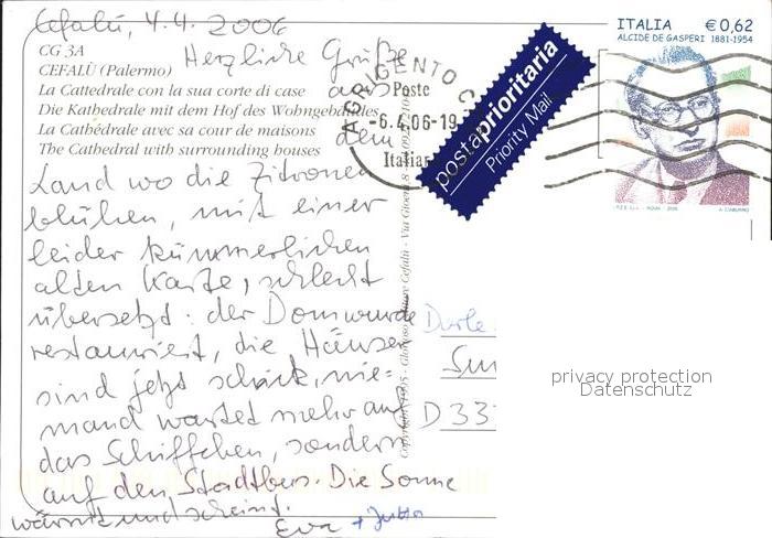 old postcard Cefalu Kathedrale Hof Wohngebaeude postalisch gelaufen Erhaltung siehe scans