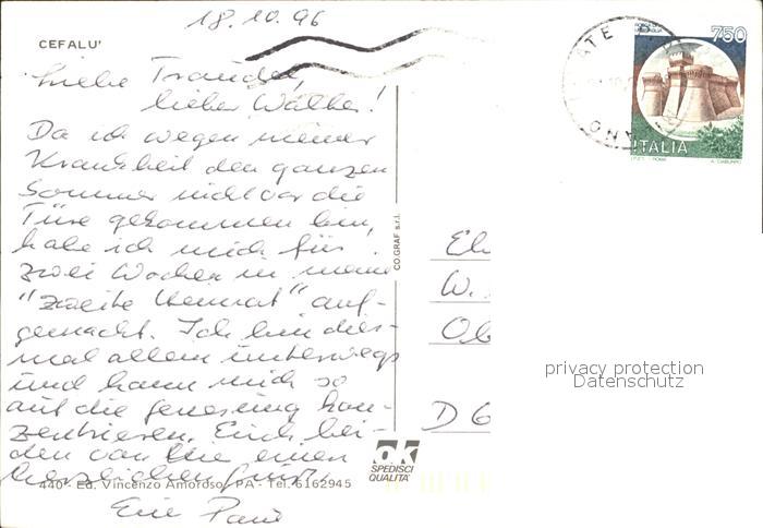 old postcard Cefalu Kirche Haeuserpartie am Wasser postalisch gelaufen Erhaltung siehe scans