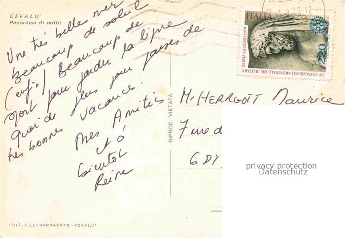 74093026 old postcard Cefalu Palermo Sicilia IT Panorama di notte postalisch gelaufen Erhaltung siehe scans [WerneD78] KatCode: 11240