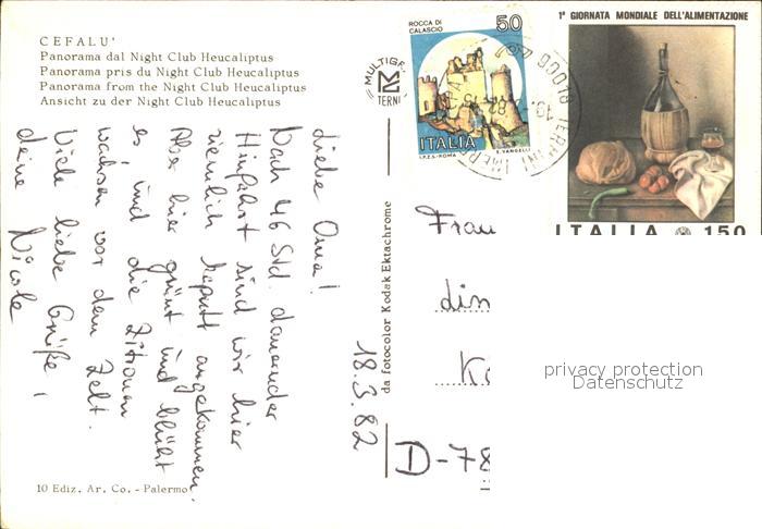 old postcard Cefalu Panorama Nightclub Heucaliptus postalisch gelaufen Erhaltung siehe scans