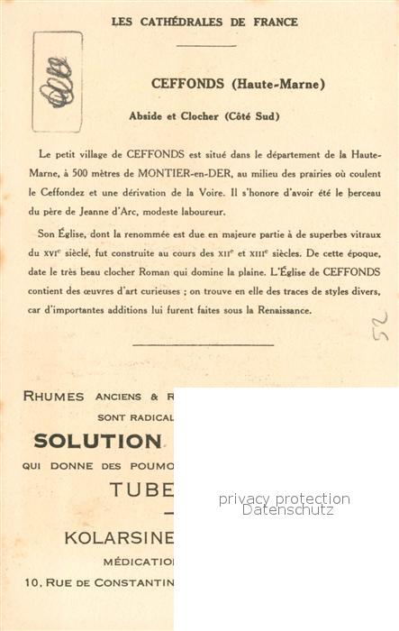 13506359 Ceffonds Eglise Abside et Clocher Collection Les Cathedrales de France KatCode 11170052352088