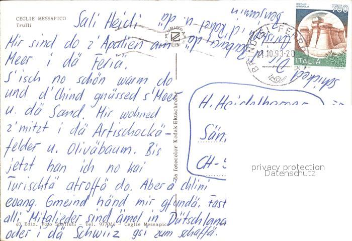 old postcard Ceglie Messapica Trulli postalisch gelaufen Erhaltung siehe scans