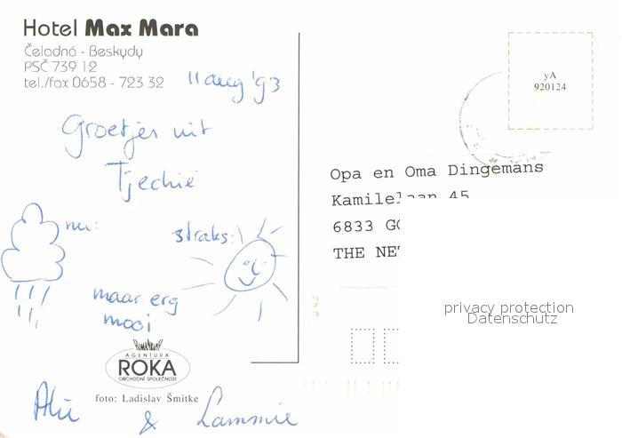 12712240 old postcard Celadna Hotel Max Mara postalisch gelaufen Erhaltung siehe scans [AndreD76] KatCode: 11520