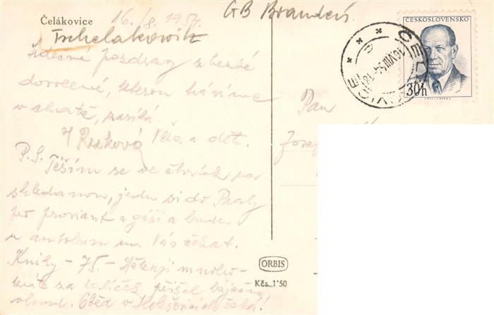 73959426 old postcard Celakovice Czelakowitz CZ Ortsansicht mit Kirche postalisch gelaufen Erhaltung siehe scans [FriedD77] KatCode: 11520
