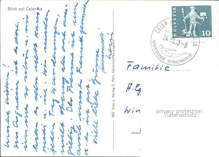11634267 alte Postkarte Celerina GR postalisch gelaufen Erhaltung siehe scans KatCode: 11470100335214