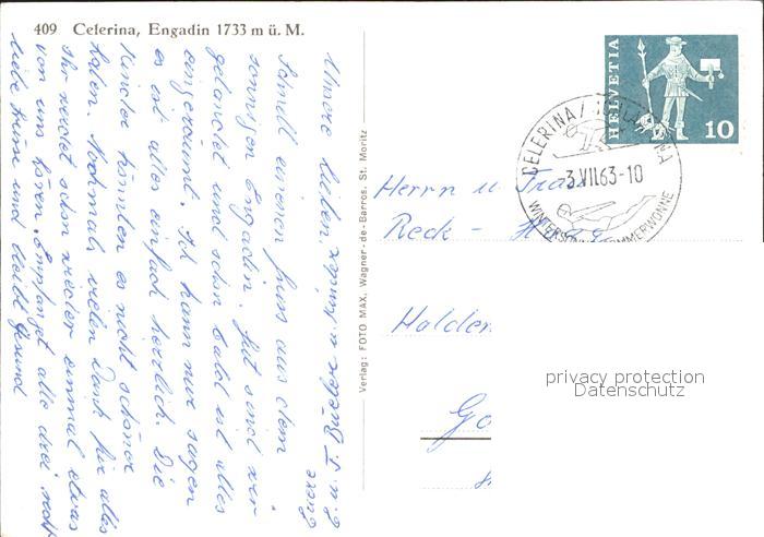11634257 alte Postkarte Celerina GR postalisch gelaufen Erhaltung siehe scans KatCode: 11470100335214