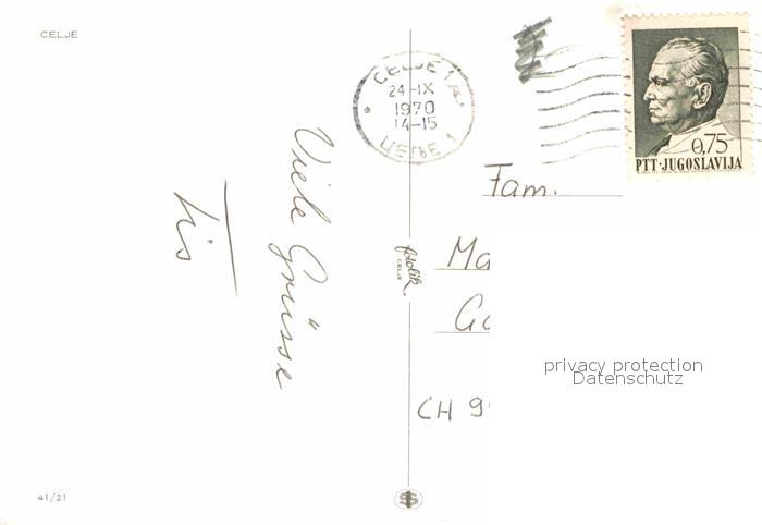 old postcard Celje Cilli Fliegeraufnahme Partie am Fluss postalisch gelaufen Erhaltung siehe scans [LiesaD40]