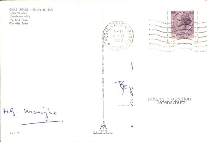 old postcard Celle Ligure Citta Vacchia postalisch gelaufen Erhaltung siehe scans