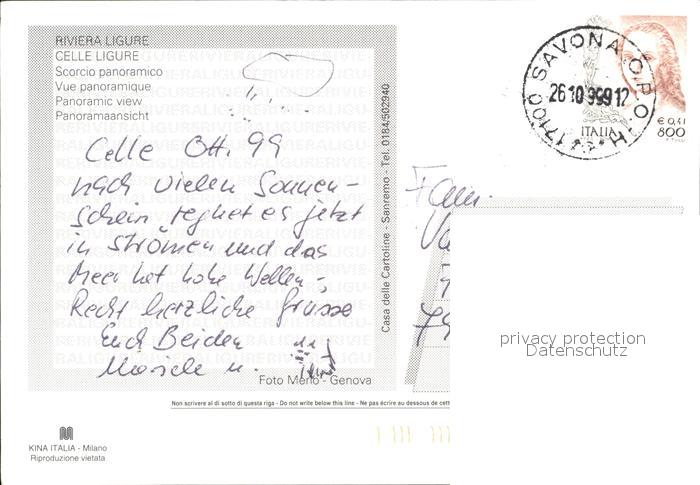 old postcard Celle Ligure Panoramaansicht postalisch gelaufen Erhaltung siehe scans