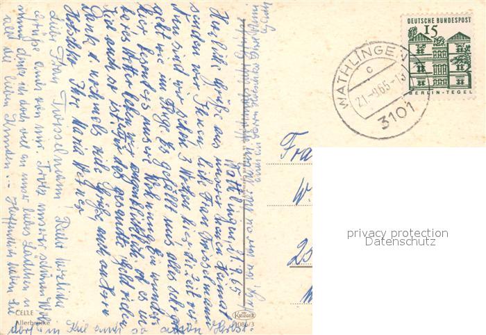 73059250 alte Postkarte Celle Niedersachsen Allerbruecke postalisch gelaufen Erhaltung siehe scans [WerneD78] KatCode: 11110003351006