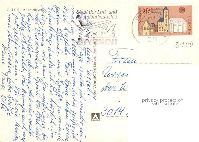 72951009 alte Postkarte Celle Niedersachsen Allerbruecke postalisch gelaufen Erhaltung siehe scans [WerneD78] KatCode: 11110003351006