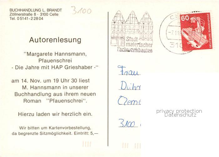 73865022 Celle Niedersachsen Buchhandlung Brandt postalisch nicht gelaufen Erhaltung siehe scans [WerneD78] Wern Katcode 11110003351006