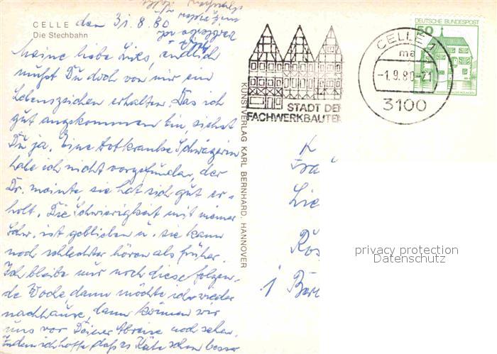 72743638 alte Postkarte Celle Niedersachsen Fachwerkhaeuser Stechbahn postalisch gelaufen Erhaltung siehe scans [LiesaD40] KatCode: 11110003351006