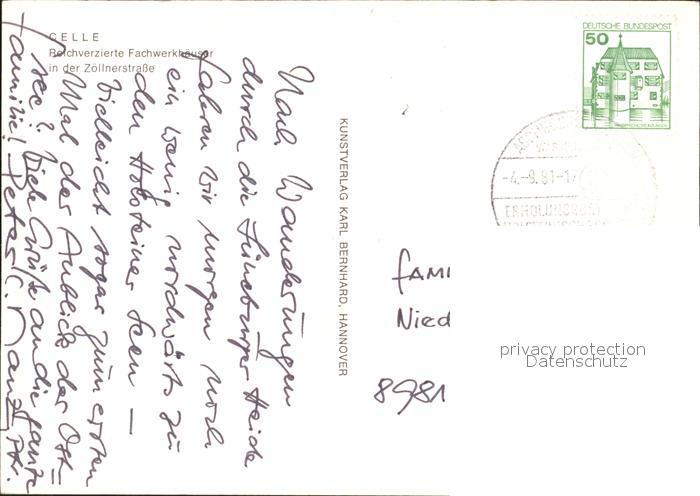 72016160 alte Postkarte Celle Niedersachsen Fachwerkhaus Zoellnerstrasse postalisch gelaufen KatCode: 11110003351006