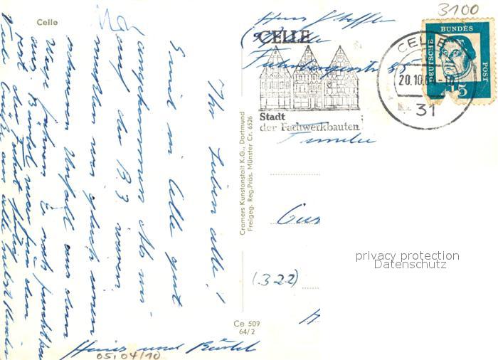 72939220 alte Postkarte Celle Niedersachsen Fliegeraufnahme postalisch gelaufen Erhaltung siehe scans [PaolaD17] KatCode: 11110003351006
