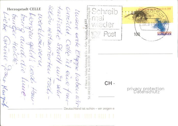 72557584 alte Postkarte Celle Niedersachsen Herzogstadt Zoellnerstrasse Stechbahn Grosser Plan Hengstparade Brunnen postalisch gelaufen Erhaltung siehe scans [KathaD79] KatCode: 11110003351006