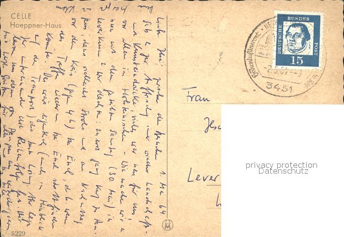 72063573 alte Postkarte Celle Niedersachsen Hoeppner Haus postalisch gelaufen Erhaltung siehe scans KatCode: 11110003351006