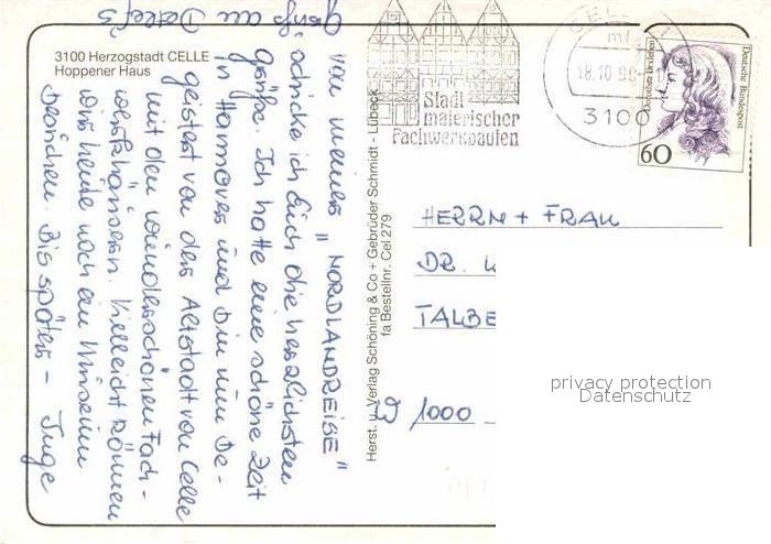 72866658 alte Postkarte Celle Niedersachsen Hoppener Haus postalisch gelaufen Erhaltung siehe scans [NatalD47] KatCode: 11110003351006