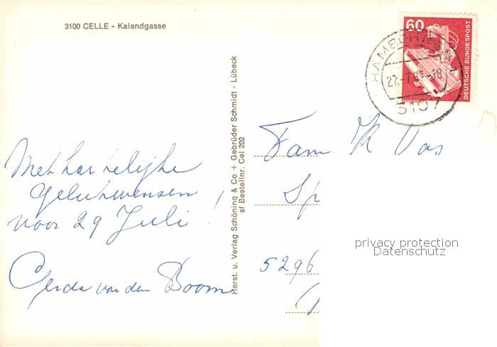 72865080 alte Postkarte Celle Niedersachsen Kalandgasse Fachwerk und Kirche postalisch gelaufen Erhaltung siehe scans [LiesaD40] KatCode: 11110003351006