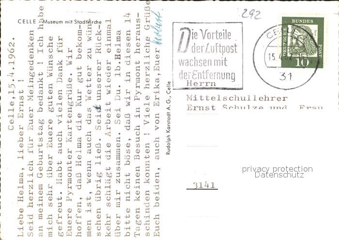 72606199 alte Postkarte Celle Niedersachsen Museum mit Stadtkirche postalisch gelaufen Erhaltung siehe scans [AndreD76] KatCode: 11110003351006