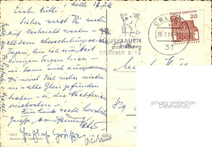 72425770 alte Postkarte Celle Niedersachsen Museum und Stadtkirche postalisch gelaufen Erhaltung siehe scans KatCode: 11110003351006
