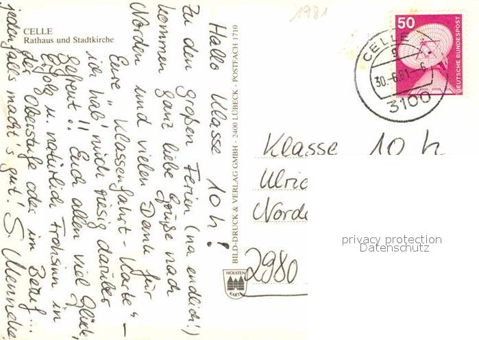 72914682 alte Postkarte Celle Niedersachsen Rathaus Stadtkirche postalisch gelaufen Erhaltung siehe scans [NatalD47] KatCode: 11110003351006