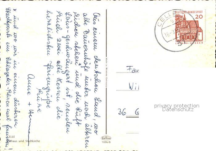 72395321 alte Postkarte Celle Niedersachsen Rathaus und Stadtkirche postalisch gelaufen Erhaltung siehe scans KatCode: 11110003351006