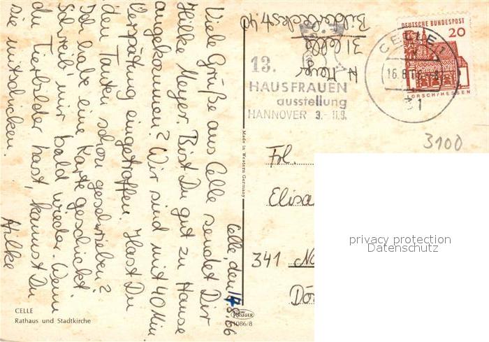 73059252 alte Postkarte Celle Niedersachsen Rathaus und Stadtkirche postalisch gelaufen Erhaltung siehe scans [WerneD78] KatCode: 11110003351006