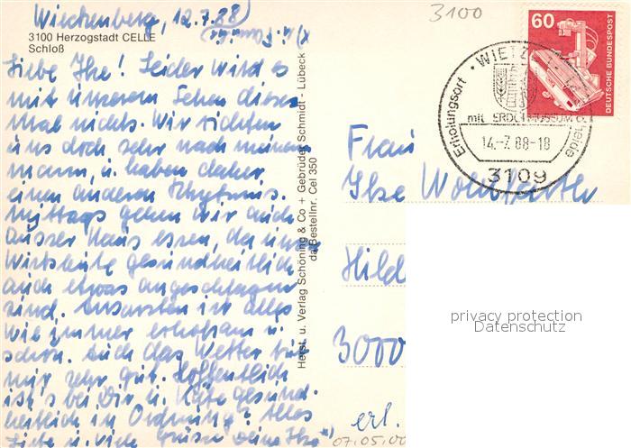 72955831 alte Postkarte Celle Niedersachsen Schloss postalisch gelaufen Erhaltung siehe scans [FriedD77] KatCode: 11110003351006