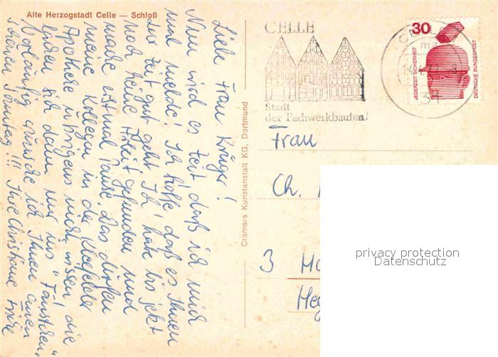 72880089 alte Postkarte Celle Niedersachsen Schloss Alte Herzogstadt postalisch gelaufen Erhaltung siehe scans [FriedD77] KatCode: 11110003351006