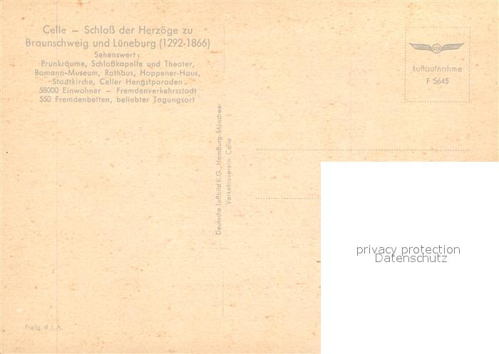 73542180 Celle Niedersachsen Schloss der Herzoege zu Braunschweig und Lueneburg Fliegeraufnahme postalisch nicht gelaufen Erhaltung siehe scans [WerneD78] KatCode: 11110003351006