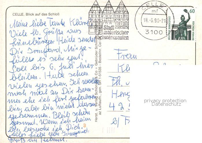 73018853 alte Postkarte Celle Niedersachsen Schloss Fliegeraufnahme postalisch gelaufen Erhaltung siehe scans [NatalD47] KatCode: 11110003351006