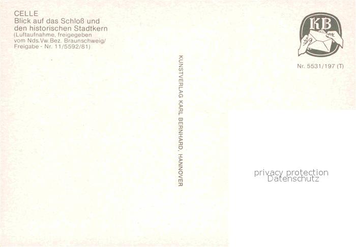 72713360 Celle Niedersachsen Schloss historischer Stadtkern Fliegeraufnahme postalisch nicht gelaufen Erhaltung siehe scans [FriedD77] KatCode: 11110003351006