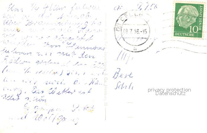43495205 alte Postkarte Celle Niedersachsen Schloss Mauernstrasse Allerpartie Am Heiligen Kreuz postalisch gelaufen Erhaltung siehe scans [KathaD81] KatCode: 11110003351006
