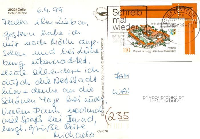 73858915 Celle Niedersachsen Schuhstrasse postalisch gelaufen Erhaltung siehe scans [WerneD78] alte Postkarte Wern Katcode 11110003351006