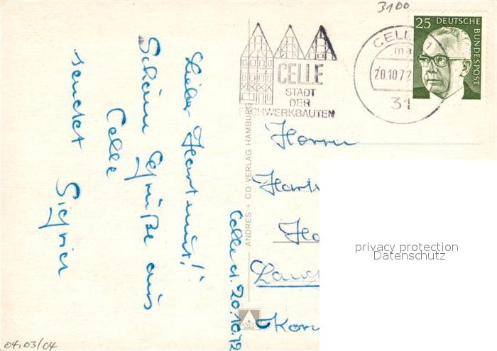72955842 alte Postkarte Celle Niedersachsen Stadtkirche Grosser Plan Fachwerkhaeuser Altstadt Neue Strasse postalisch gelaufen Erhaltung siehe scans [FriedD77] KatCode: 11110003351006