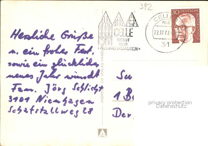 72605487 alte Postkarte Celle Niedersachsen Stadtkirche Grosser Plan Fachwerkhaeuser Neue Strasse postalisch gelaufen Erhaltung siehe scans [FriedD77] KatCode: 11110003351006