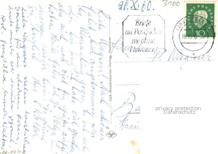 72984103 alte Postkarte Celle Niedersachsen Stadtkirche Schloss Hapener Haus Schuhstrasse Rathaus postalisch gelaufen Erhaltung siehe scans [WerneD78] KatCode: 11110003351006