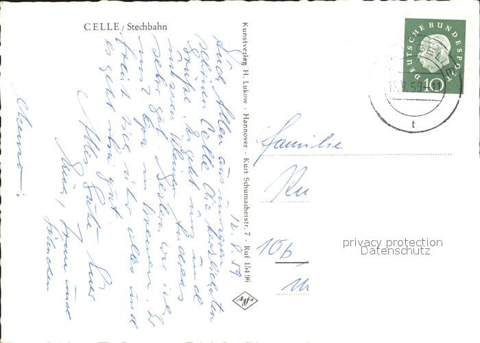 72046315 alte Postkarte Celle Niedersachsen Stechbahn postalisch gelaufen KatCode: 11110003351006